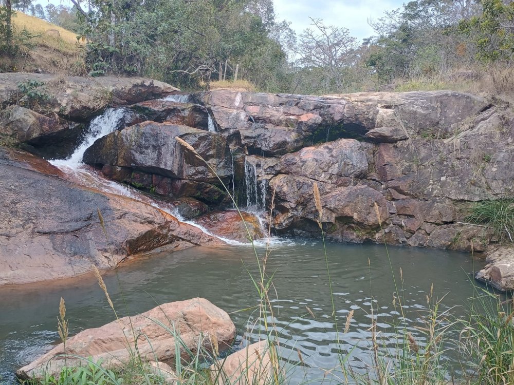 Bastante água corrente nos fundos,e cachoeira.