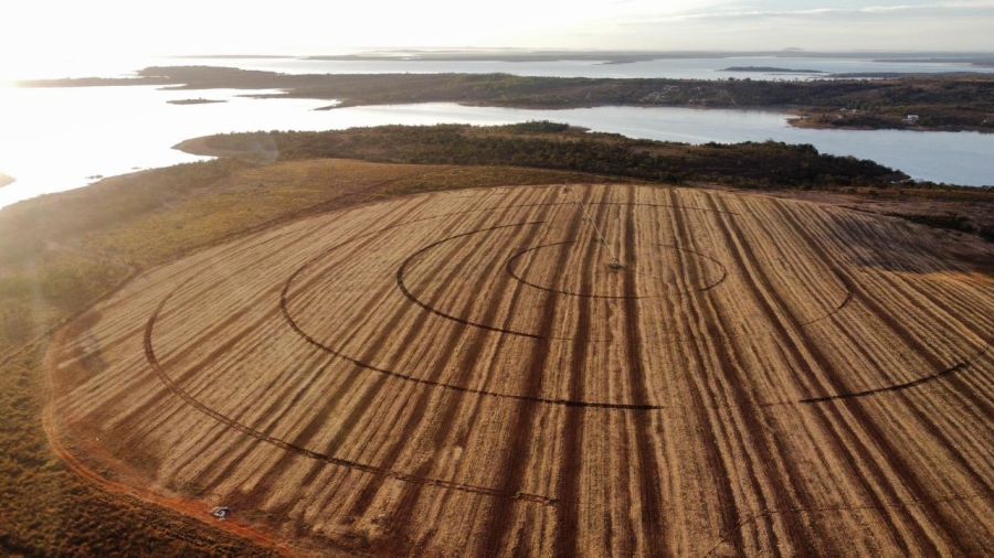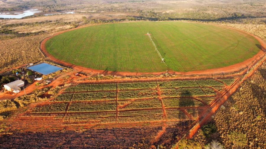 Área aberta de 13 ha para irrigação por malha, área em pastagem formada